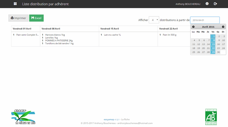 Ce logiciel a été développé initialement pour les besoins de l'AMAP de La Riche (Indre-et-Loire) et est maintenant disponible pour toutes les AMAP qui le souhaitent.