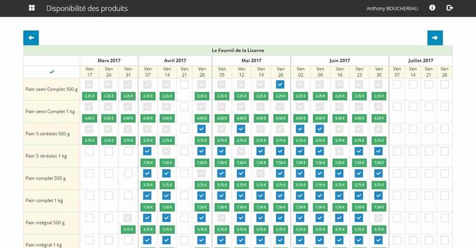 Les comptes "référent" permettent de créer un contrat en fixant les dates et la liste des produits disponibles.