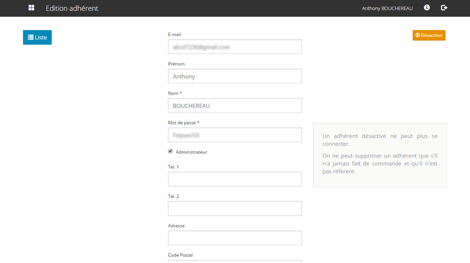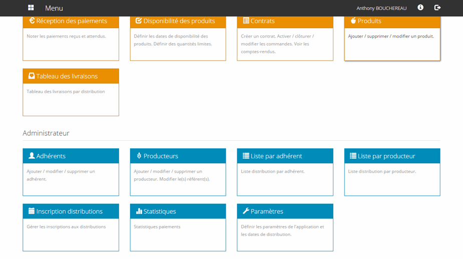 Les comptes "administrateurs" servent à la gestion des adhérents, des producteurs et permettent d'accéder à des statistiques avancées.